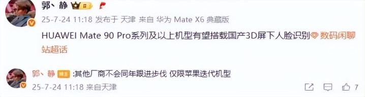 你说Mate90 Pro真要用上了屏下3D人脸来了,视觉观感将更纯粹,屏占比也能上一个高度,这太震撼了。